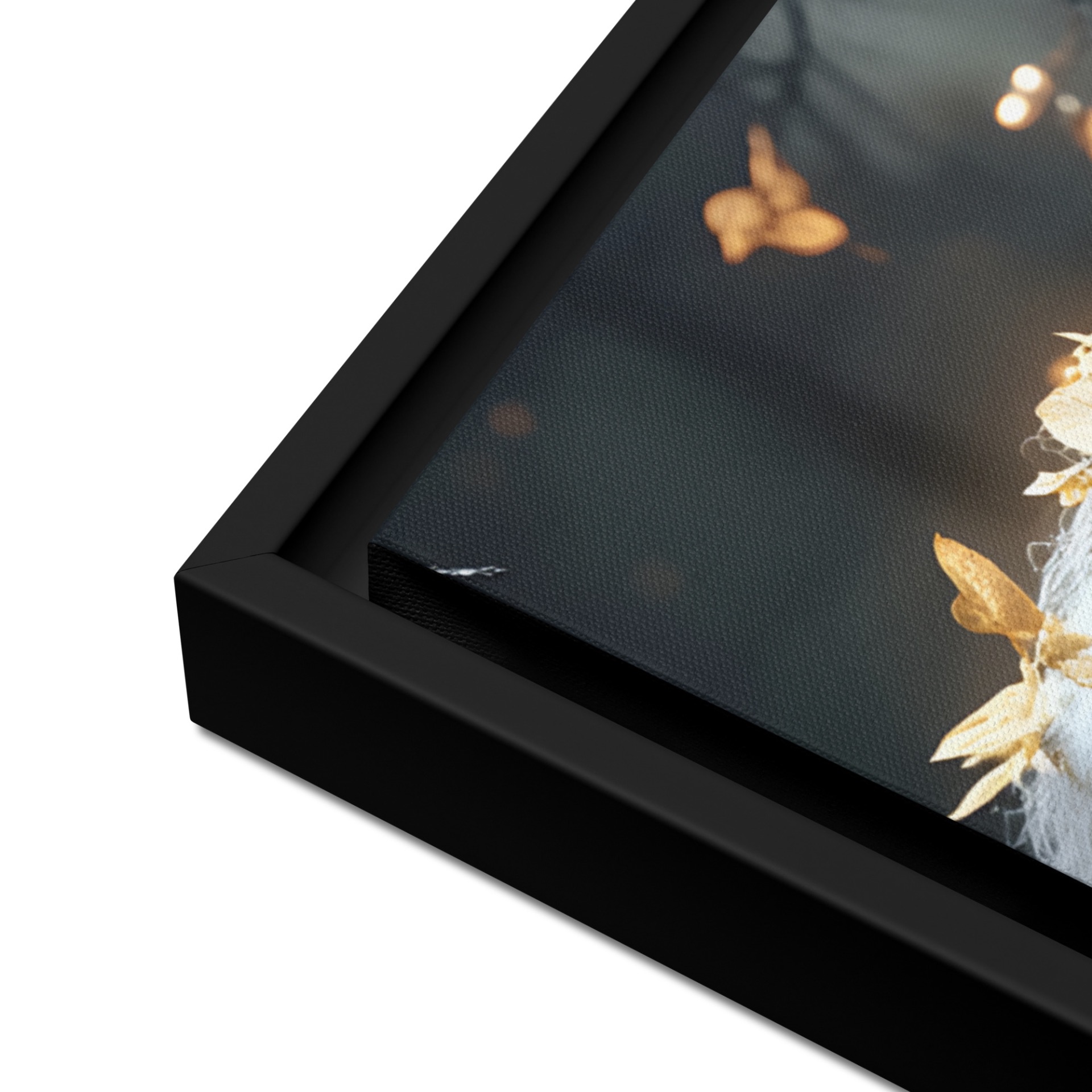 - Ingelijste canvassen met een zwart frame hebben een zwarte binnenrand rond het canvas.