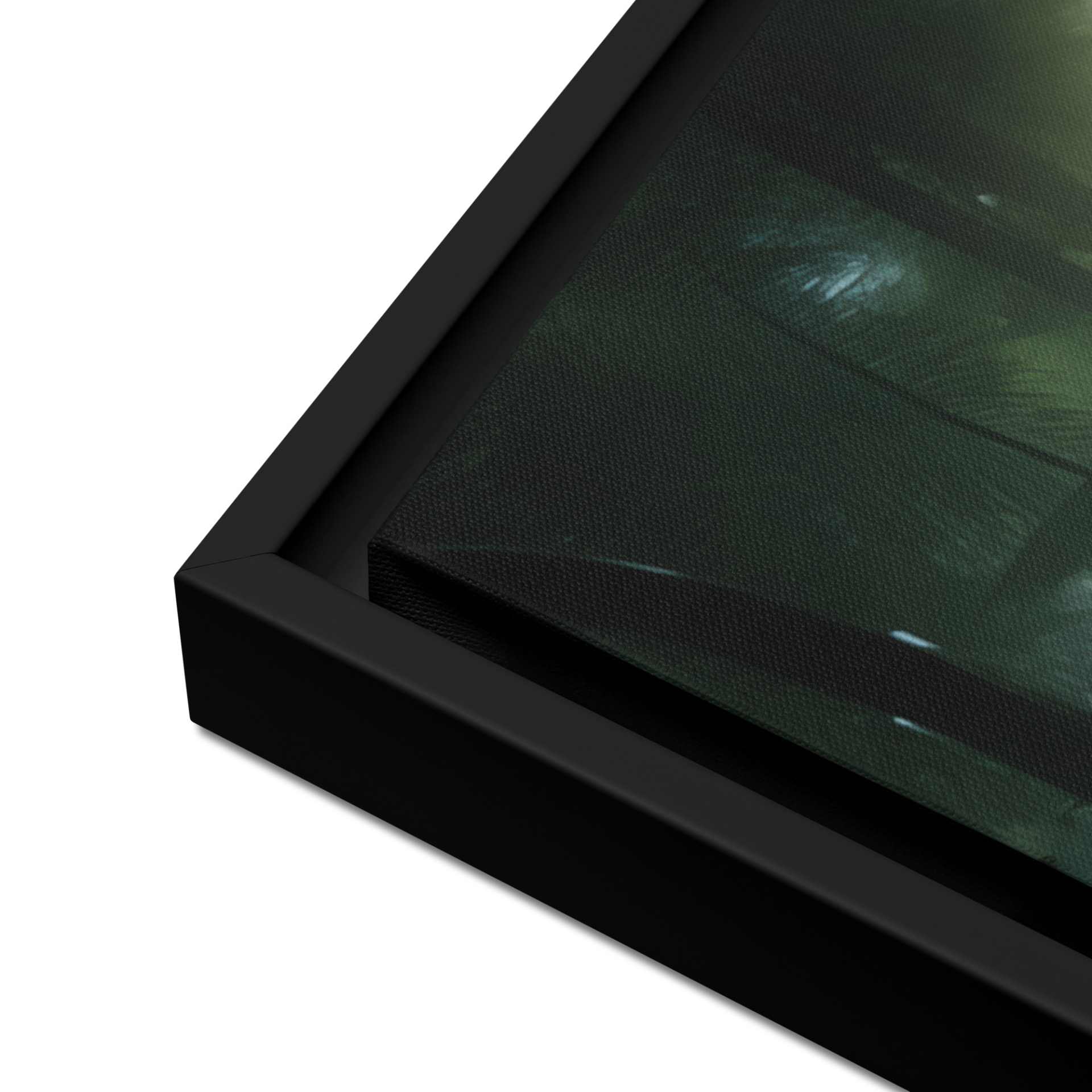 - Ingelijste canvassen met een zwart frame hebben een zwarte binnenrand rond het canvas.